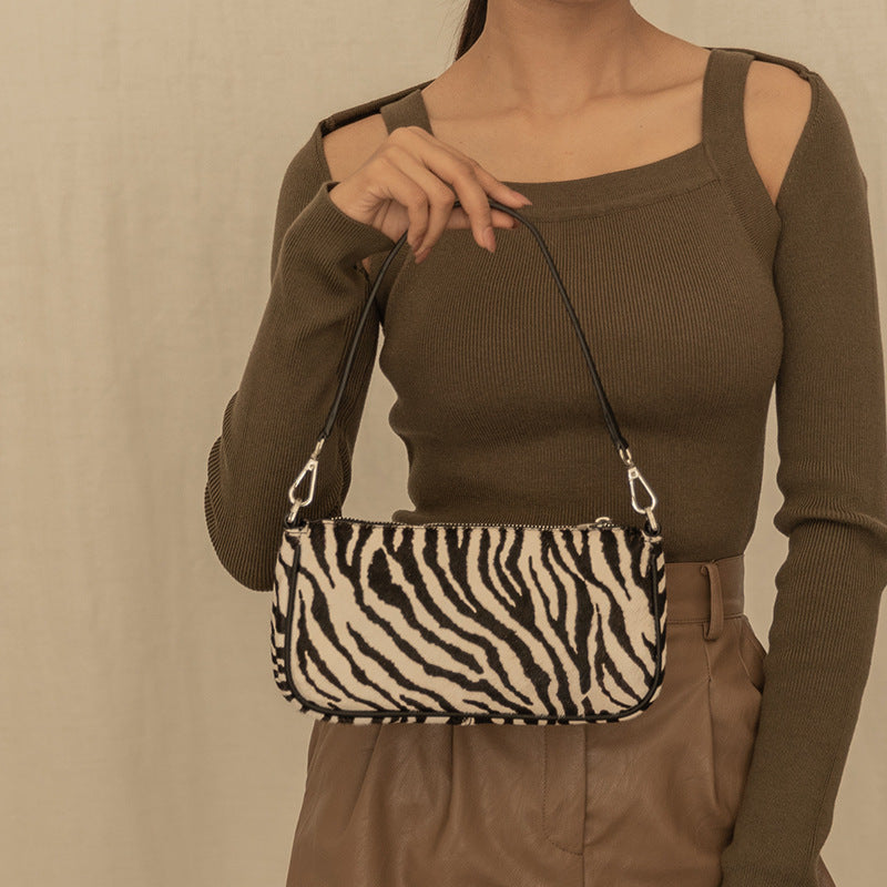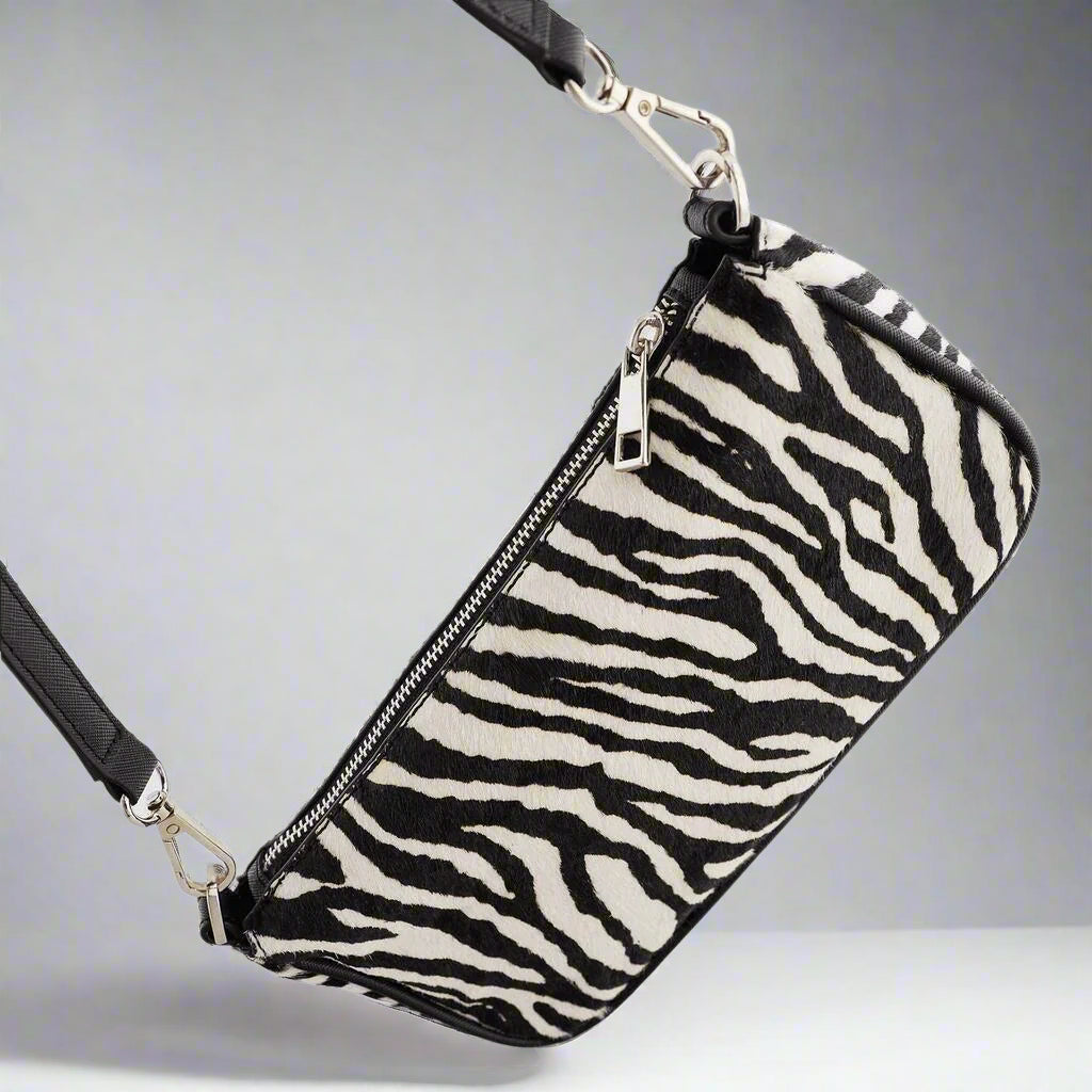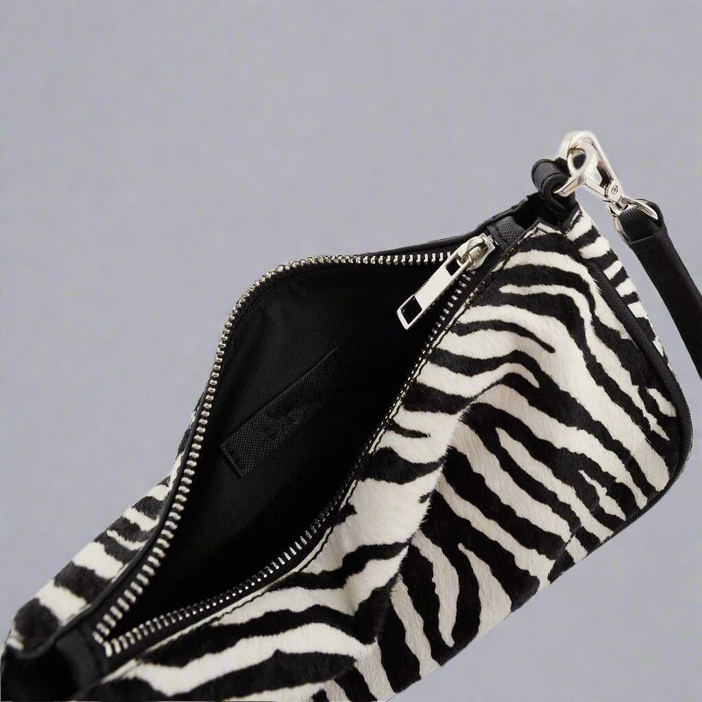 This sophisticated zebra print shoulder bag is crafted from soft PU material for a luxurious feel. It features a secure zip closure, combining elegant design with practical functionality, making it an ideal accessory to elevate your ensemble.