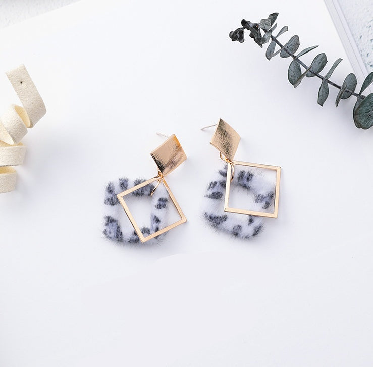 These elegant earrings showcase a double diamond shape in a refined gold finish, beautifully combined with a subtle leopard print pattern. Designed to add a sophisticated touch to your ensemble, they effortlessly blend classic geometry with a hint of wild allure. Ideal for elevating both casual and formal looks.