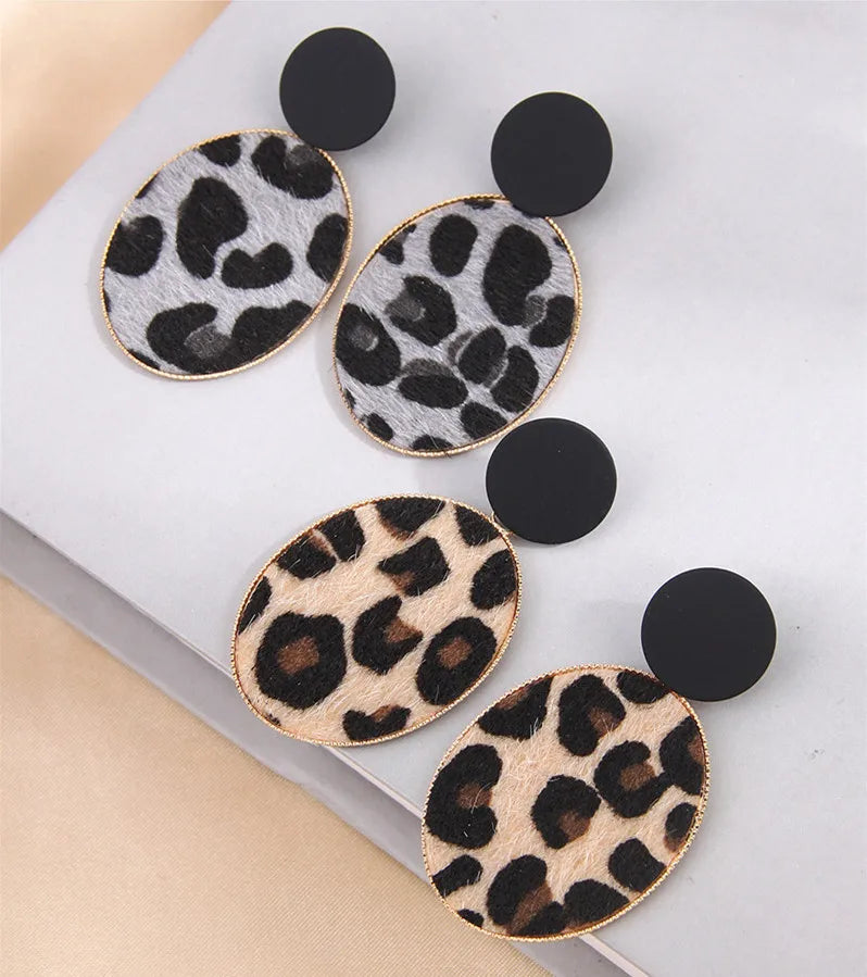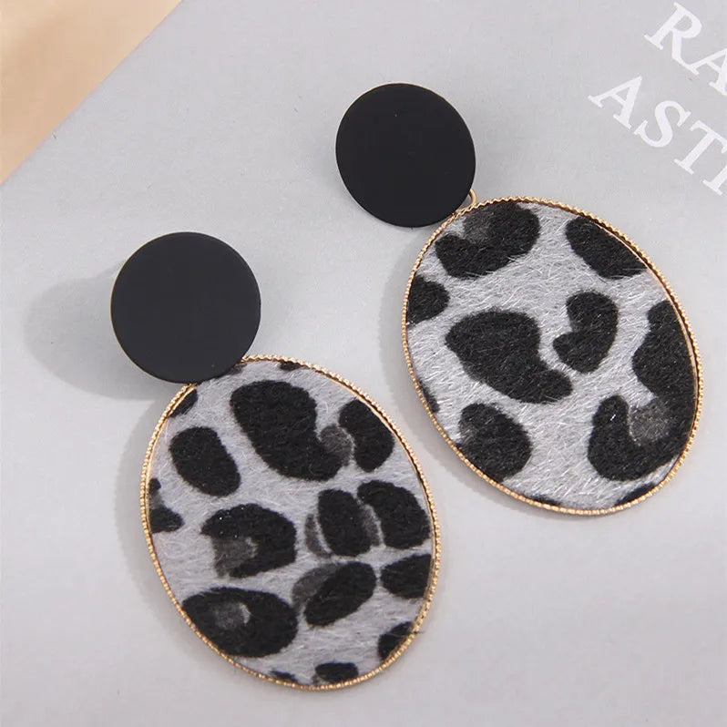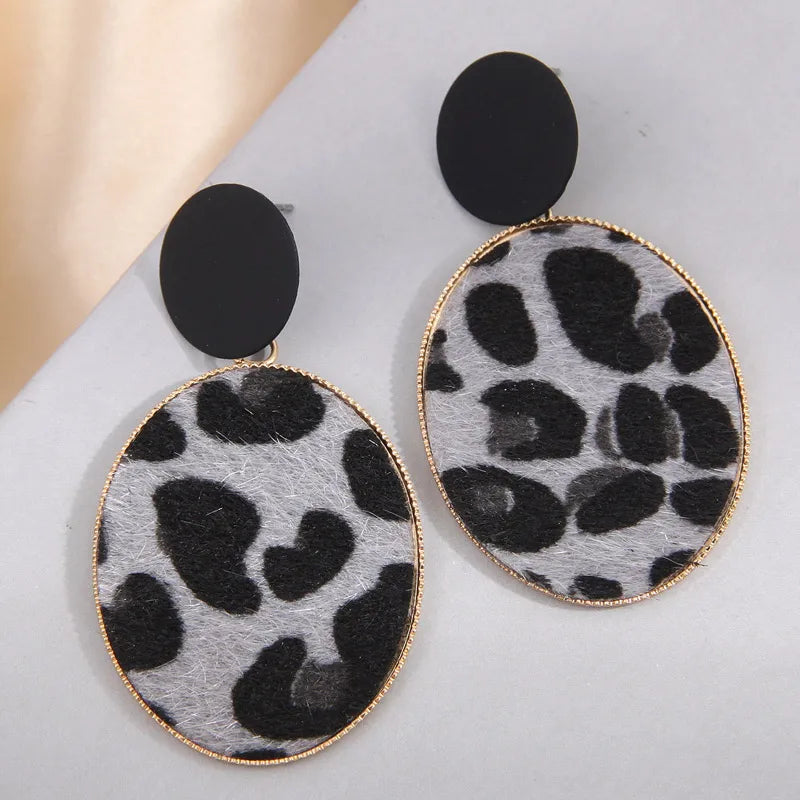 Make a bold statement with these oval drop earrings featuring a textured leopard print design. Available in two striking colors, each earring is set on a refined gold backing that adds a touch of elegance. Perfect for elevating any outfit with a sophisticated edge.