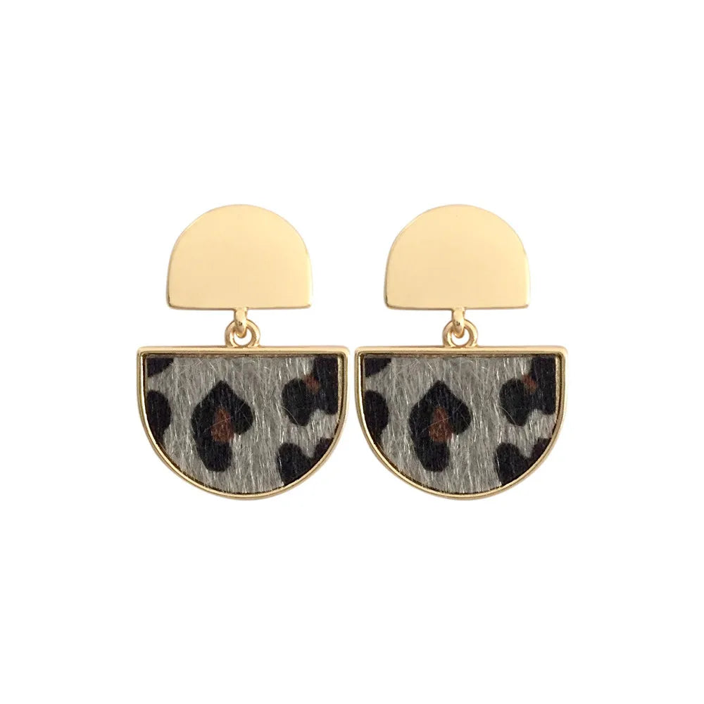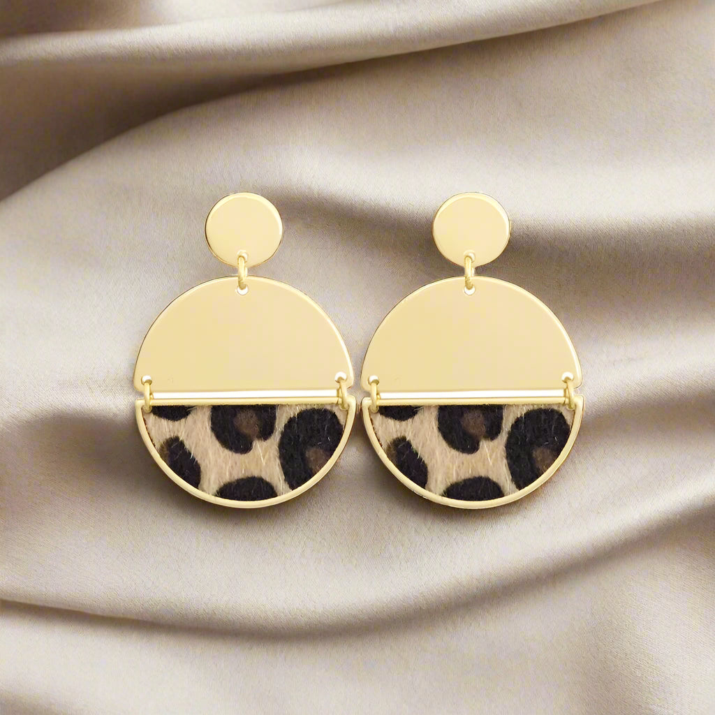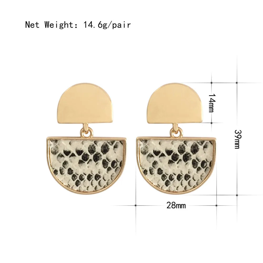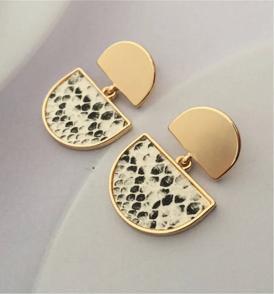 These exquisite half-circle drop earrings combine a refined gold finish with captivating animal print options—choose from elegant snake or chic leopard patterns. Designed to enhance your look with a sophisticated edge, they offer a perfect balance of boldness and grace for any occasion.
