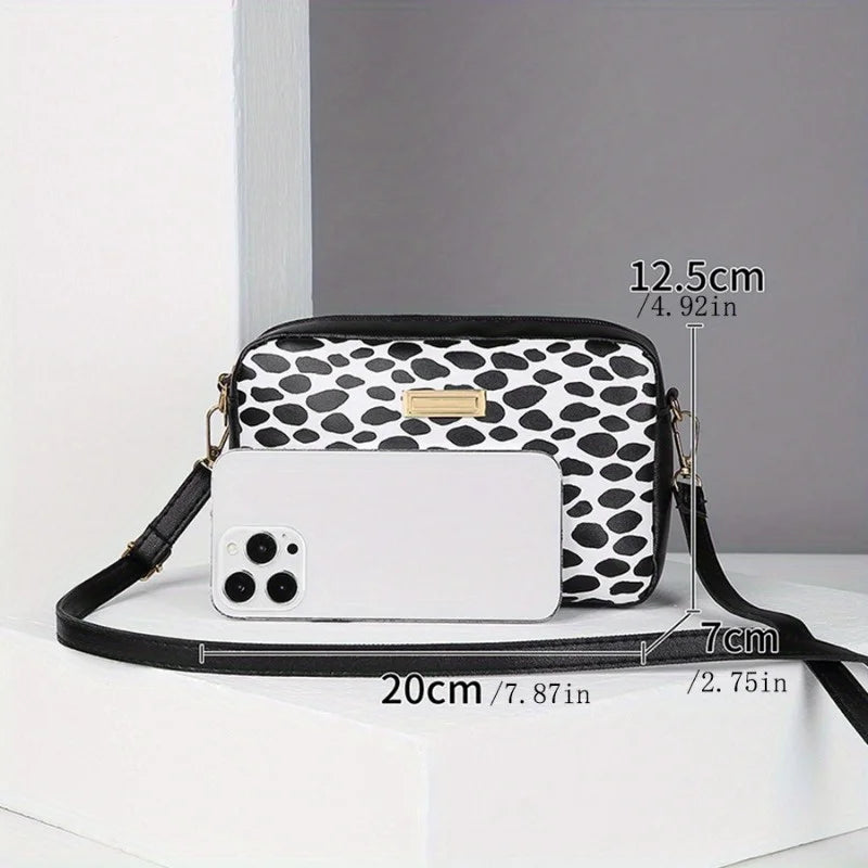 This elegant crossbody bag features a chic leopard print crafted from smooth PU leather, combining style and practicality. Designed to fit your phone securely, it includes a sleek black strap for comfortable, hands-free wear. Perfect for adding a sophisticated touch to any outfit.