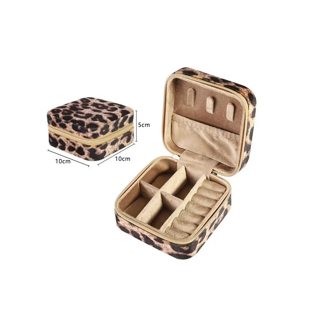 This Travel Jewellery Box combines elegance with practicality, featuring a chic leopard print design. Its zipped closure ensures secure storage, while thoughtfully designed compartments include ring holders, spacious sections, and hooks for necklaces, keeping your jewellery organized and protected during travel. Perfect for the sophisticated traveler who values both style and functionality.