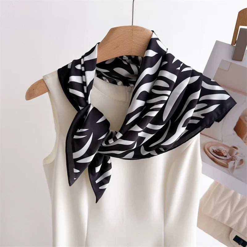 The Soft Zebra Print Square Scarf offers a luxurious silk feel in a lightweight design, making it perfect for adding a sophisticated accent to your summer wardrobe. Its subtle pattern enhances any outfit without weighing you down, combining style and comfort effortlessly.